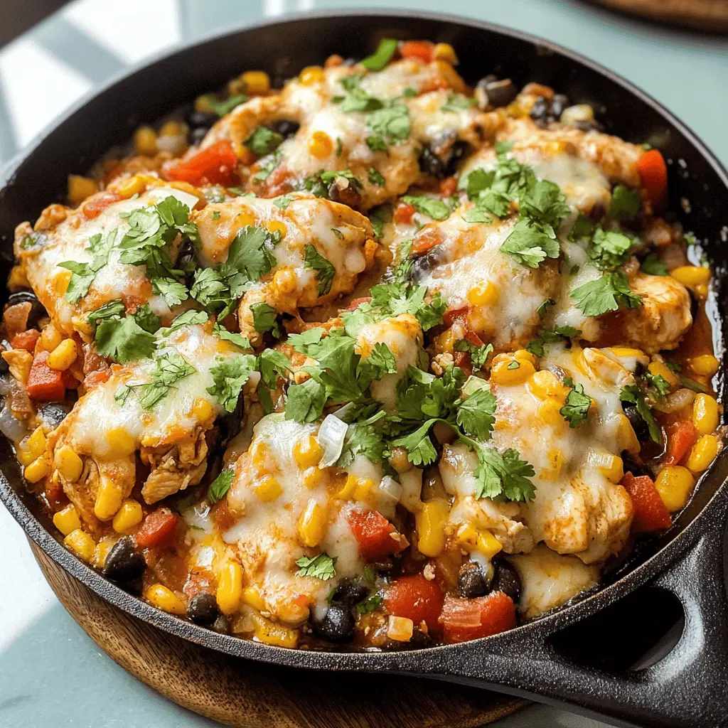 Once everything is ready, remove the skillet from the heat. Garnish your Santa Fe Chicken Skillet with some freshly chopped cilantro for a burst of color and flavor. Serve it warm and enjoy your tasty meal!